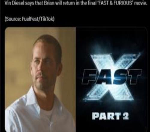 体育资讯10月4日称 今年夏天,主演范·迪塞尔曾在洛杉矶举行的FuelFest活动中透露,最后一部《速度与激情》电影预计将于2027年4月上映,故事将重返洛杉矶向系列的起点致敬,曾由已故演员保罗·沃克饰演的角色“布莱恩·奥康纳”也将在这部电影中回归。