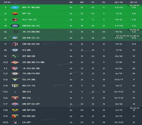随着那不勒斯21逆转,尤文00闷平,意甲第6轮最新积分榜如下!