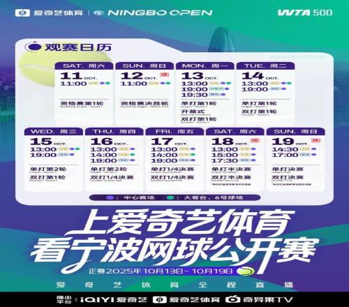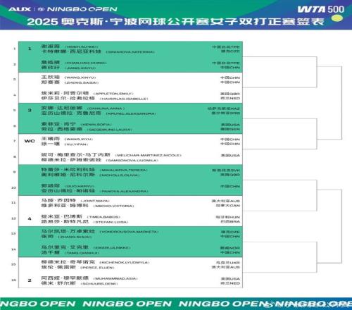 北京时间10月11日,爱奇艺体育将在10月13日起全程直播的WTA500宁波站正赛签表出炉。