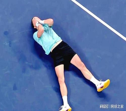 最后来猜一猜认一认。下面这张图片是一位球员获胜之后倒地庆祝。不作提示,您能认出她是谁吗?