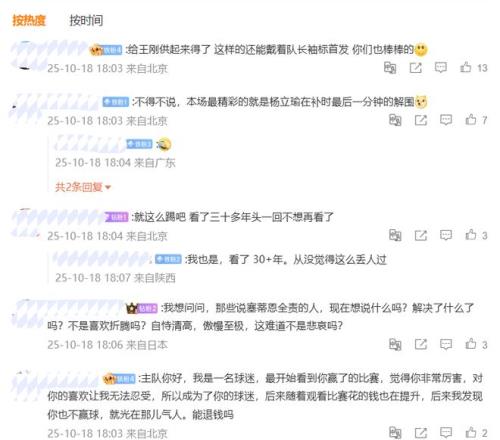 雷速体育10月18日宣 在刚刚结束的中超第27轮比赛中,北京国安客场1-2不敌深圳新鹏城,国安球迷赛后难掩怒火,再次“攻陷”了俱乐部官方微博的评论区。