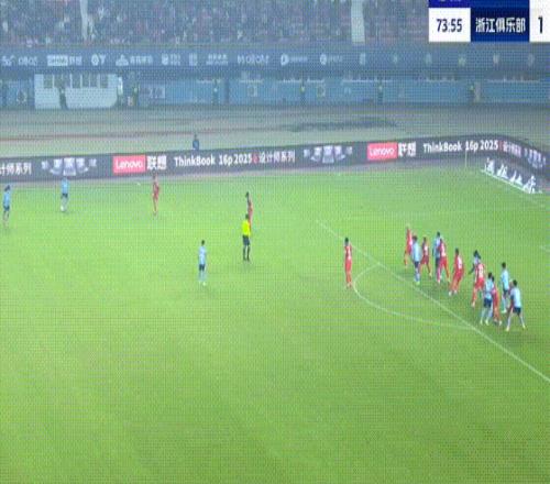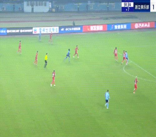 第90+2分钟,卡列洛破门梅开二度,浙江队绝平对手。