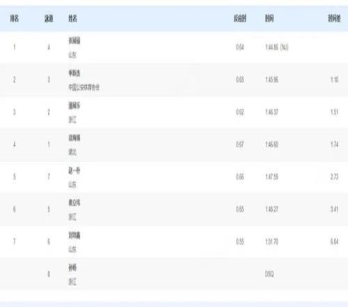 据现代快报报道,11月12日晚,第十五届全运会游泳比赛继续在深圳大运中心游泳馆举行。在男子200米自由泳决赛中,张展硕斩获冠军,季新杰亚军,潘展乐季军。本场比赛,孙杨的成绩位列第八,显示DSQ(被取消比赛资格)。