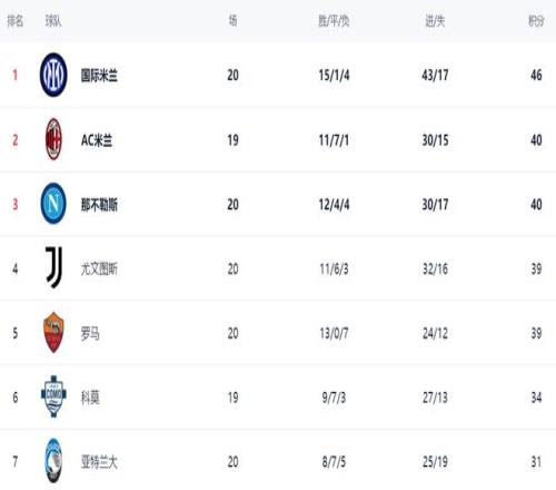 意甲夺冠热门诞生:狂揽46分,高居榜首,甩开AC米兰6分